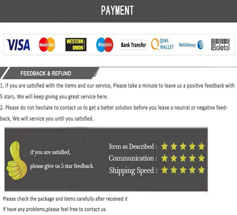 • Custom-Made Products: Generally not returnable unless there's a quality issue. In this case, a $50 handling fee and 30% restocking fee apply.