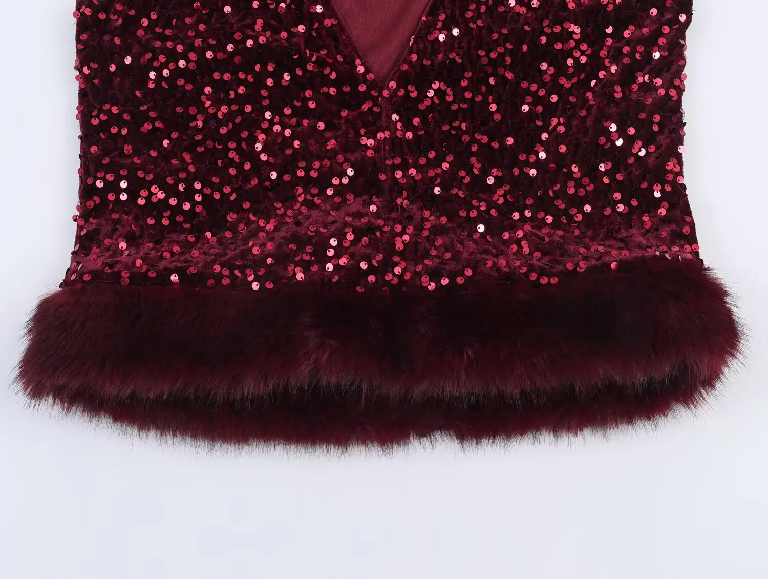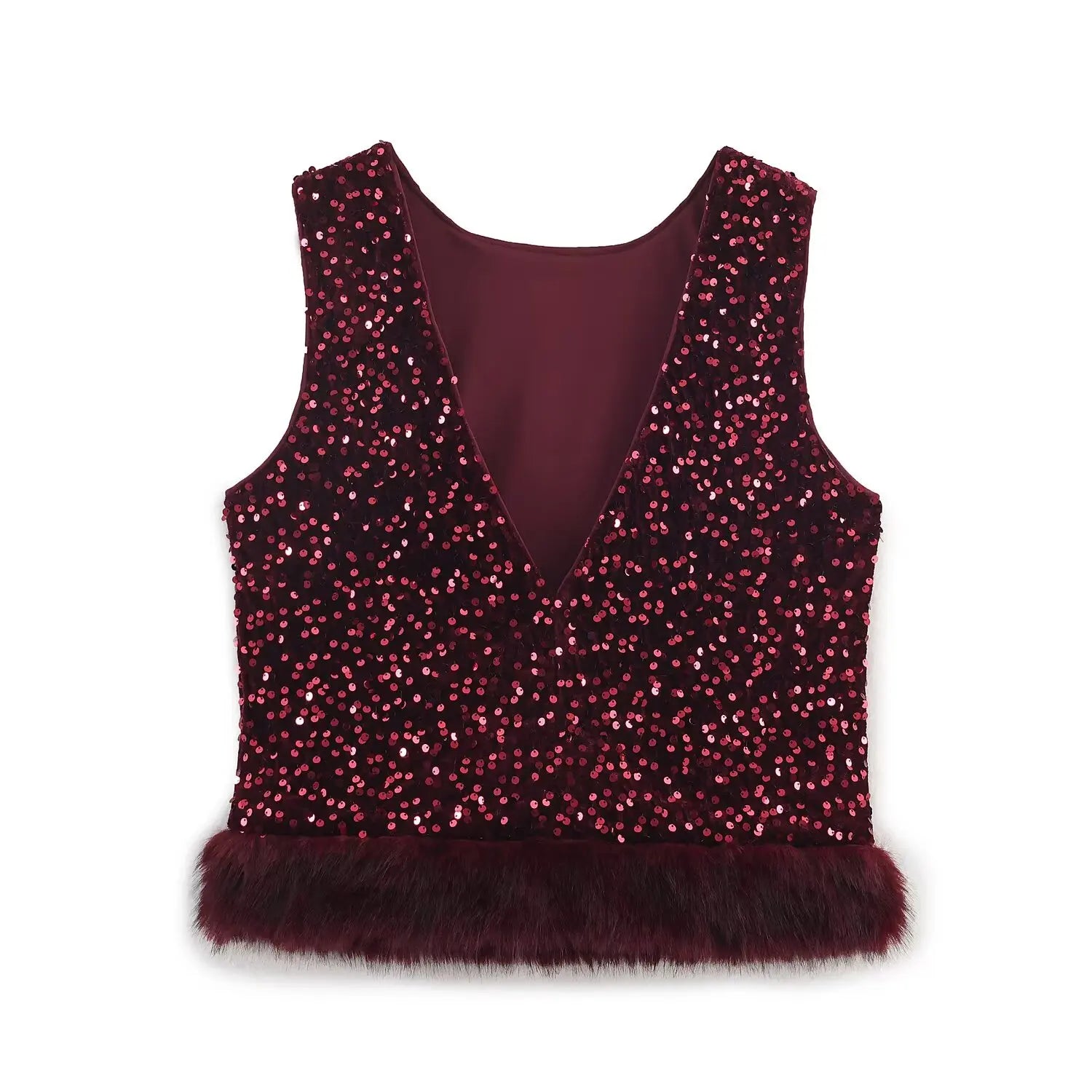 Make a bold and glamorous entrance with this chic sequin two-piece pants set, designed for women who love elegant statement looks. Featuring a sleeveless sequin fur-effect vest top paired with high-waist full-length pants, this outfit delivers effortless sophistication with a modern high-street edge. The loose yet polished silhouette offers comfort while maintaining a refined appearance, making it perfect for New Year celebrations, formal evenings, and party occasions. A standout ensemble for confident women who want sparkle without sacrificing elegance.