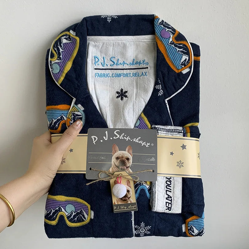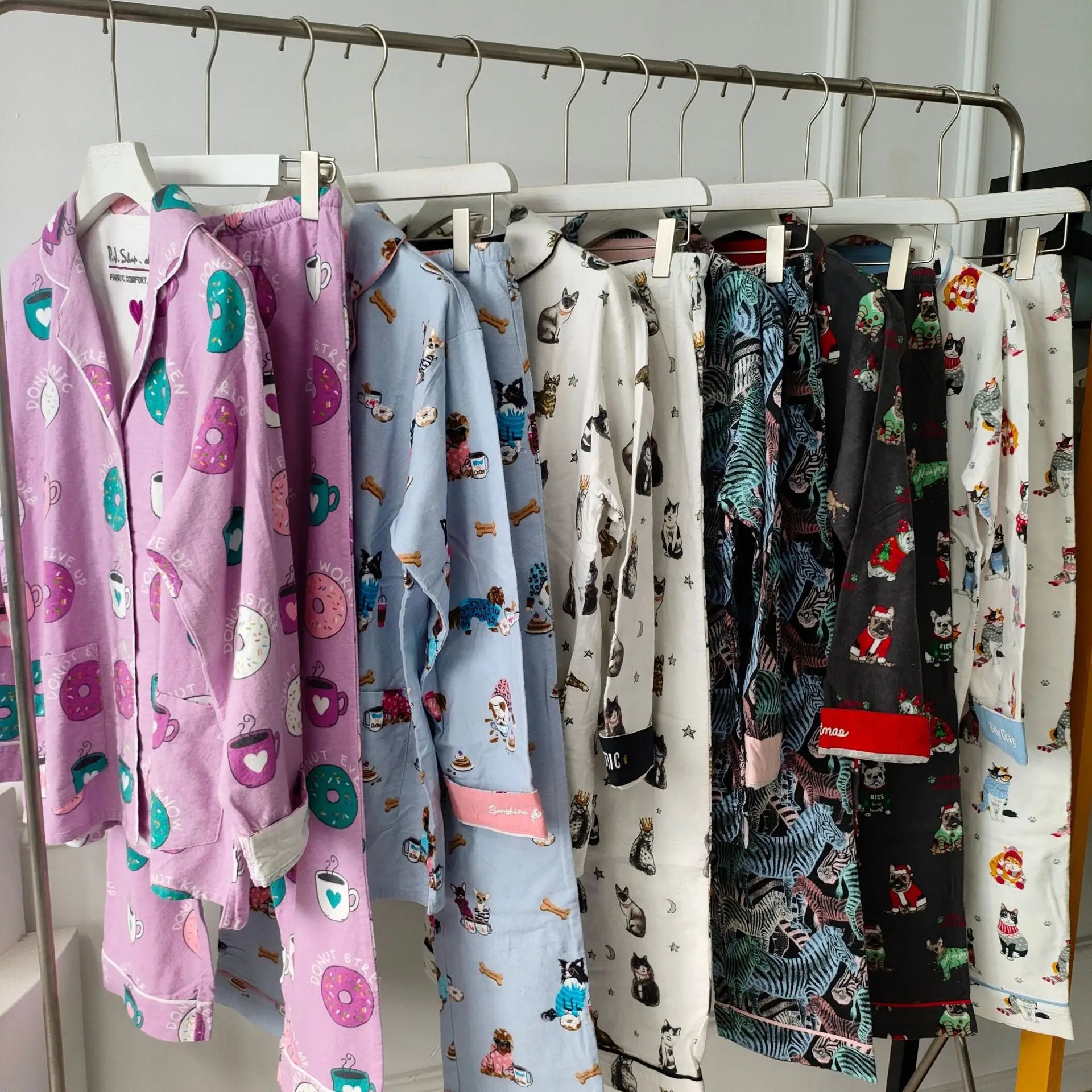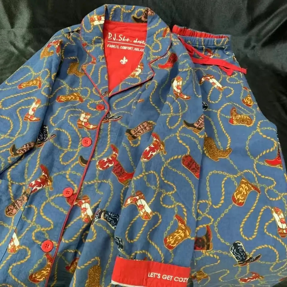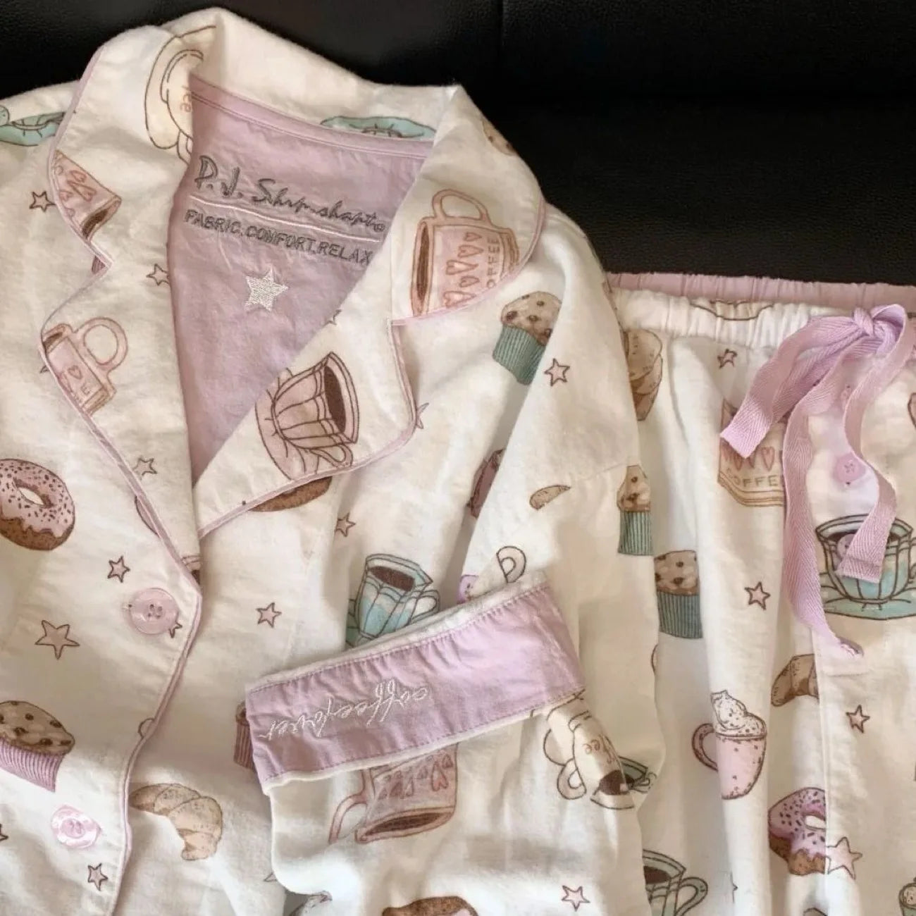 Stay cozy and comfortable with this women’s cotton pajama set, designed for relaxed evenings and restful nights. Featuring a playful cartoon pattern, a classic turn-down collar, and full-length sleeves with ankle-length pants, this set offers a soft, breathable feel ideal for everyday home wear. Made from 100% cotton, it provides natural comfort while maintaining a simple, timeless style—perfect for autumn and cooler seasons.