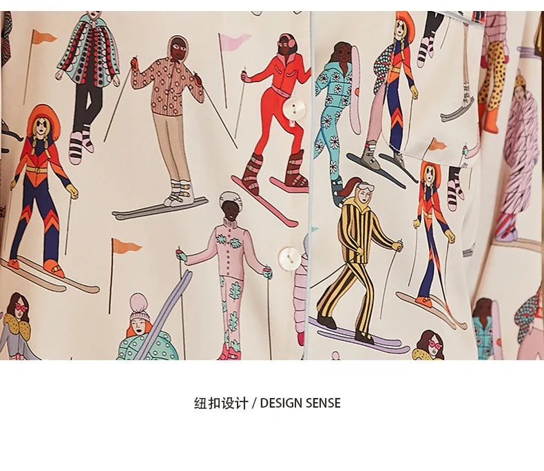 Elegant Pajama Set for Women – Long Sleeve Lapel Home Suit for Spring & Summer