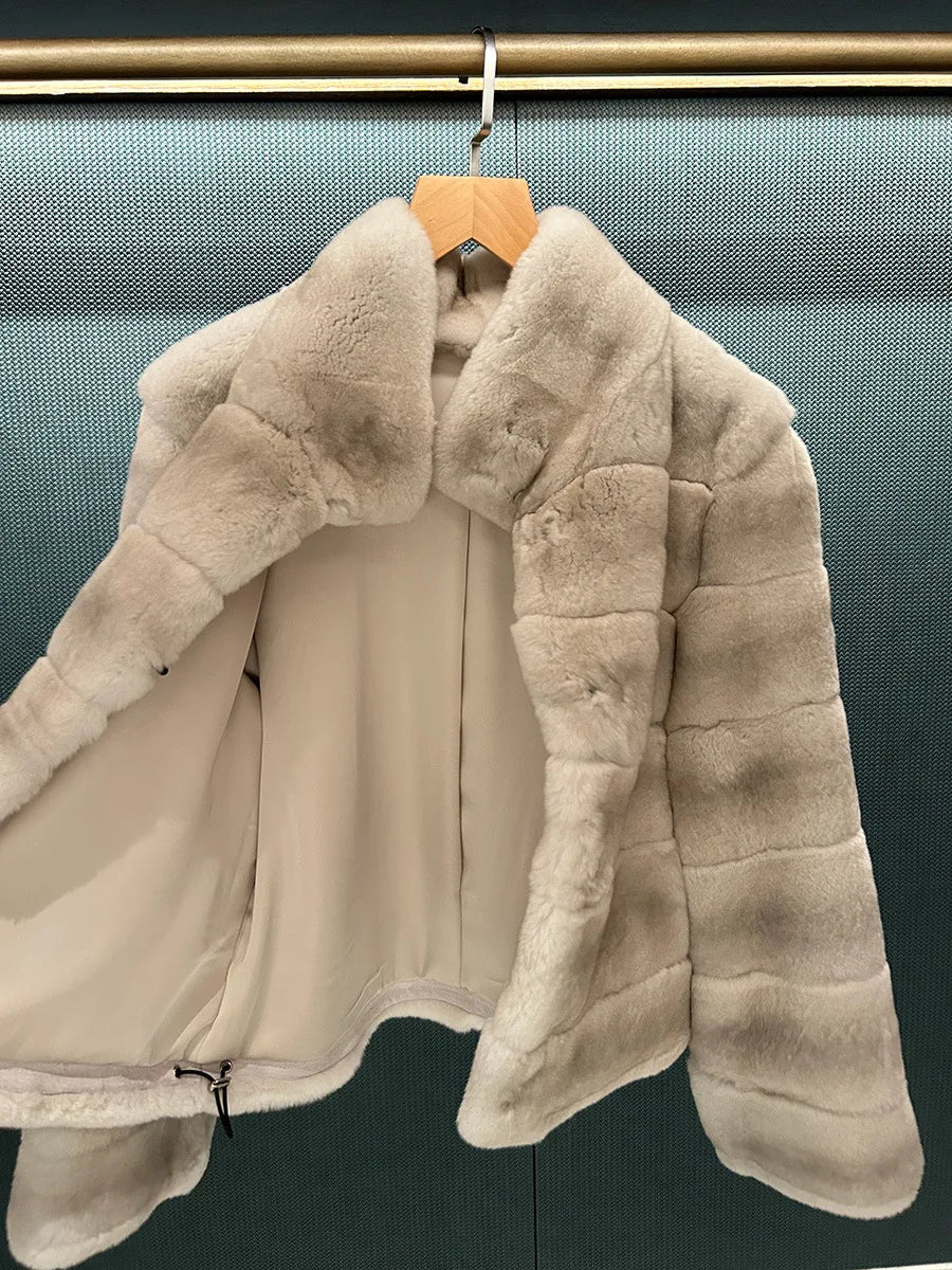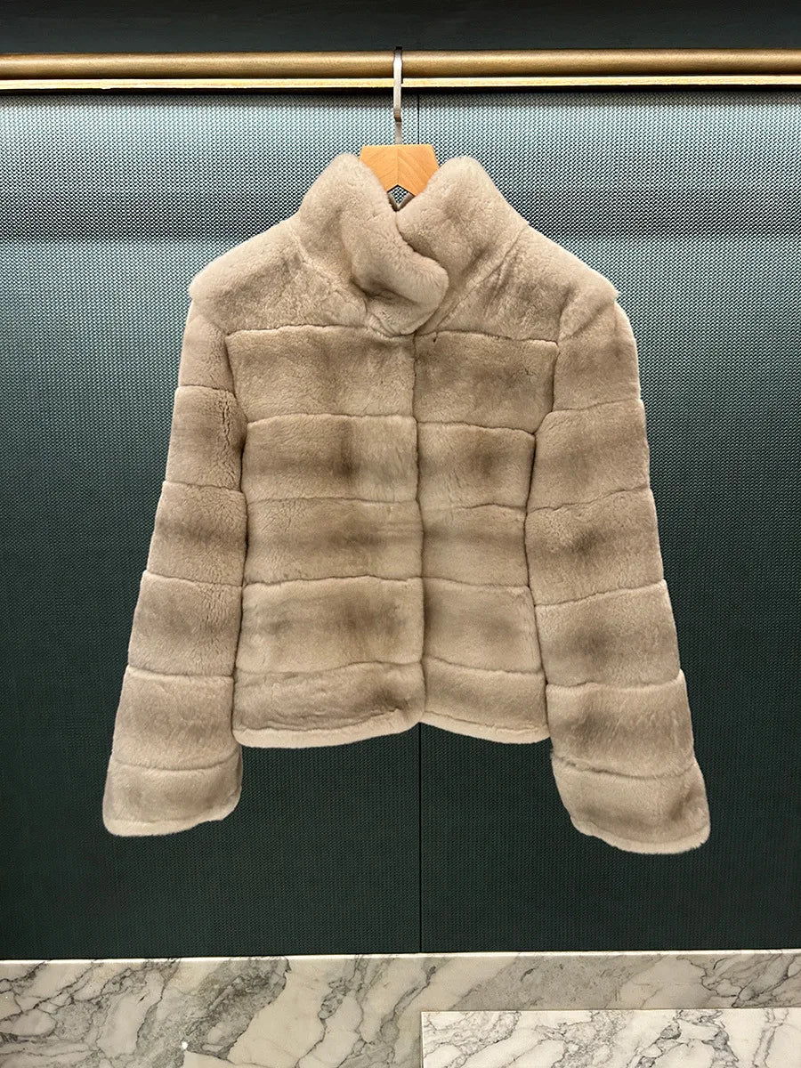 Women’s Full-Leather Mink Fur Collar Coat – Luxury Fall/Winter Fashion Outerwear