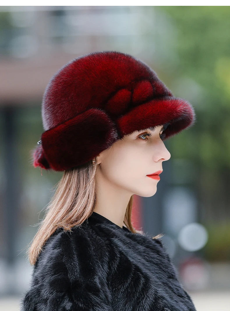 Real Mink Fur Hat for Women – Winter Thickened Whole Mink Fur Fisherman Hat with Ear Protection