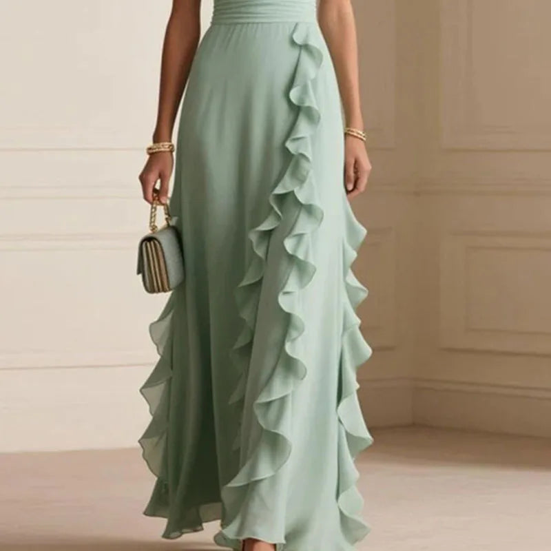 Boho Long Ruffle Dress – Women's V-Neck High Waist Butterfly Sleeve Maxi Dress