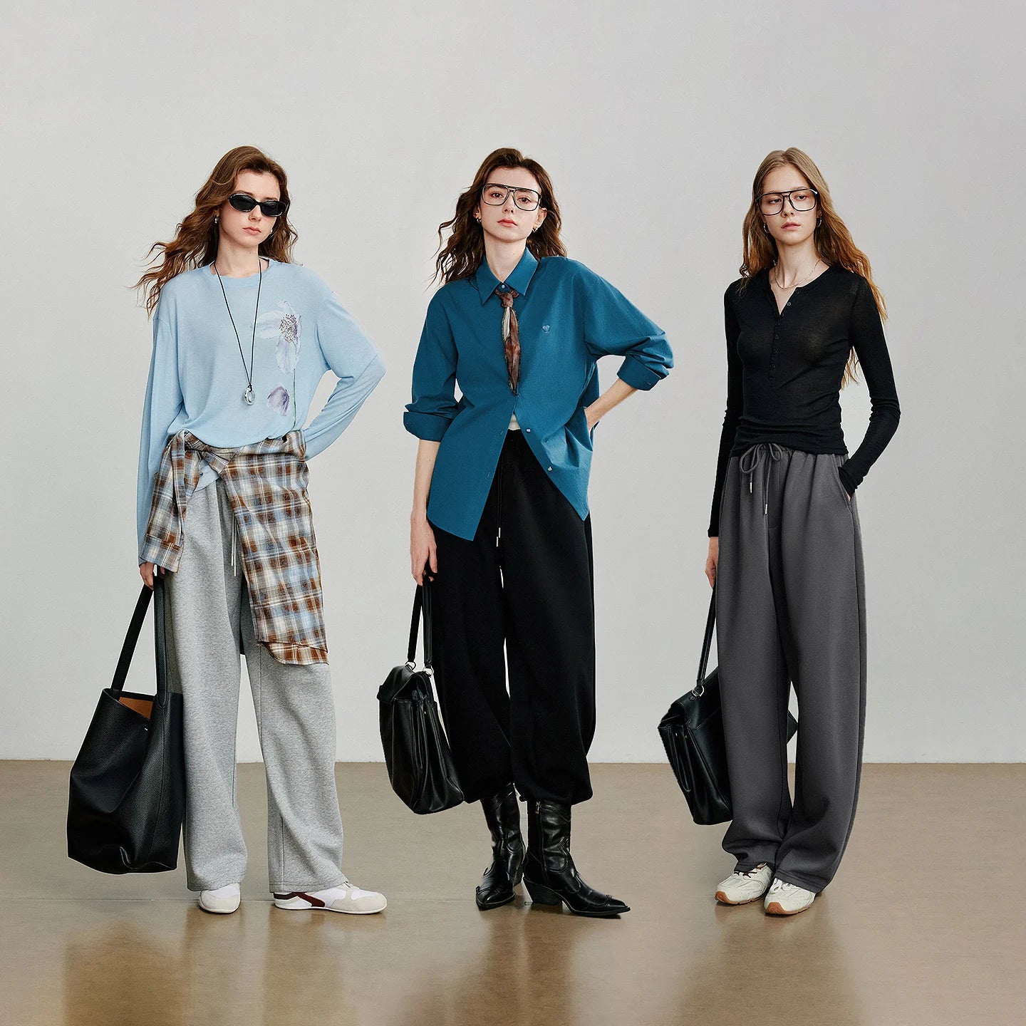 Autumn Elastic Waist Sweatpants – Women’s Wide-Leg Straight Cotton Sports Pants