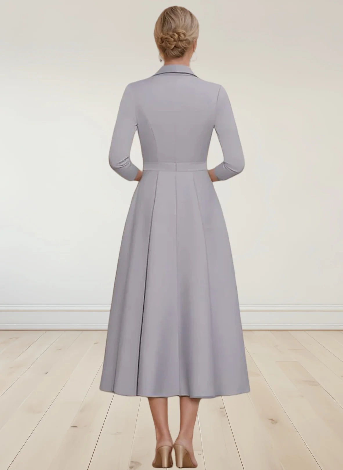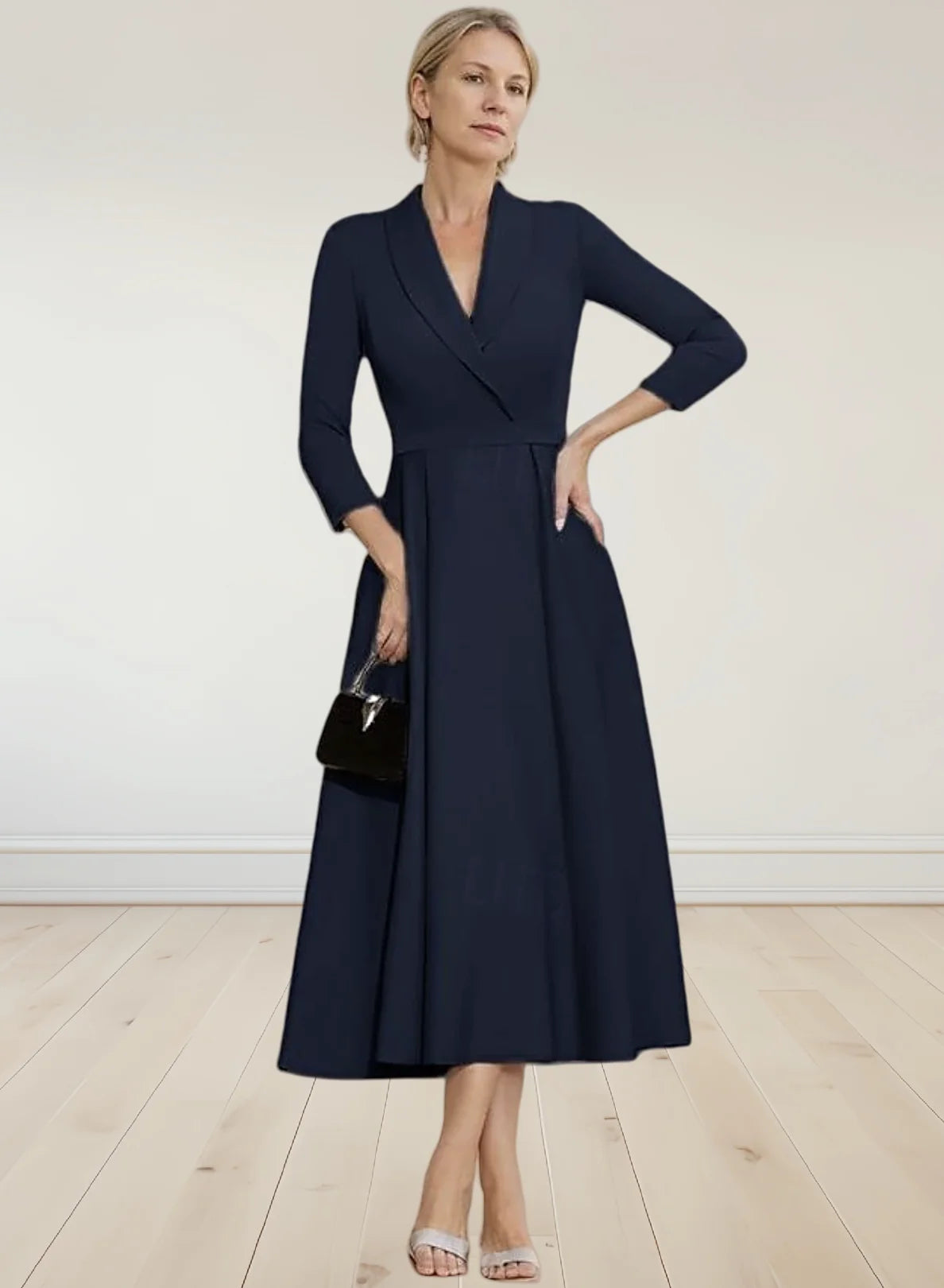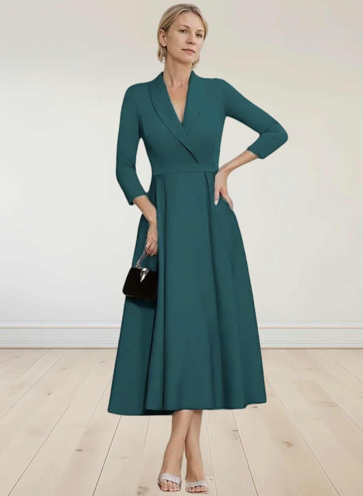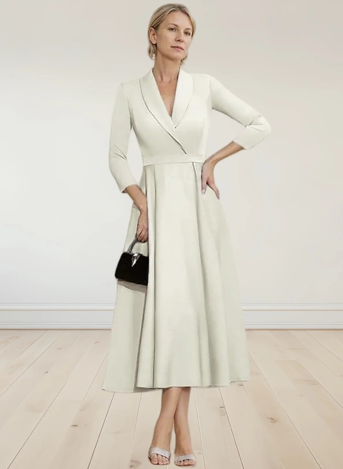 Elegant A-Line Satin Mother of the Bride Dress – Tea Length with 3/4 Sleeves | 2025 Wedding Guest Look