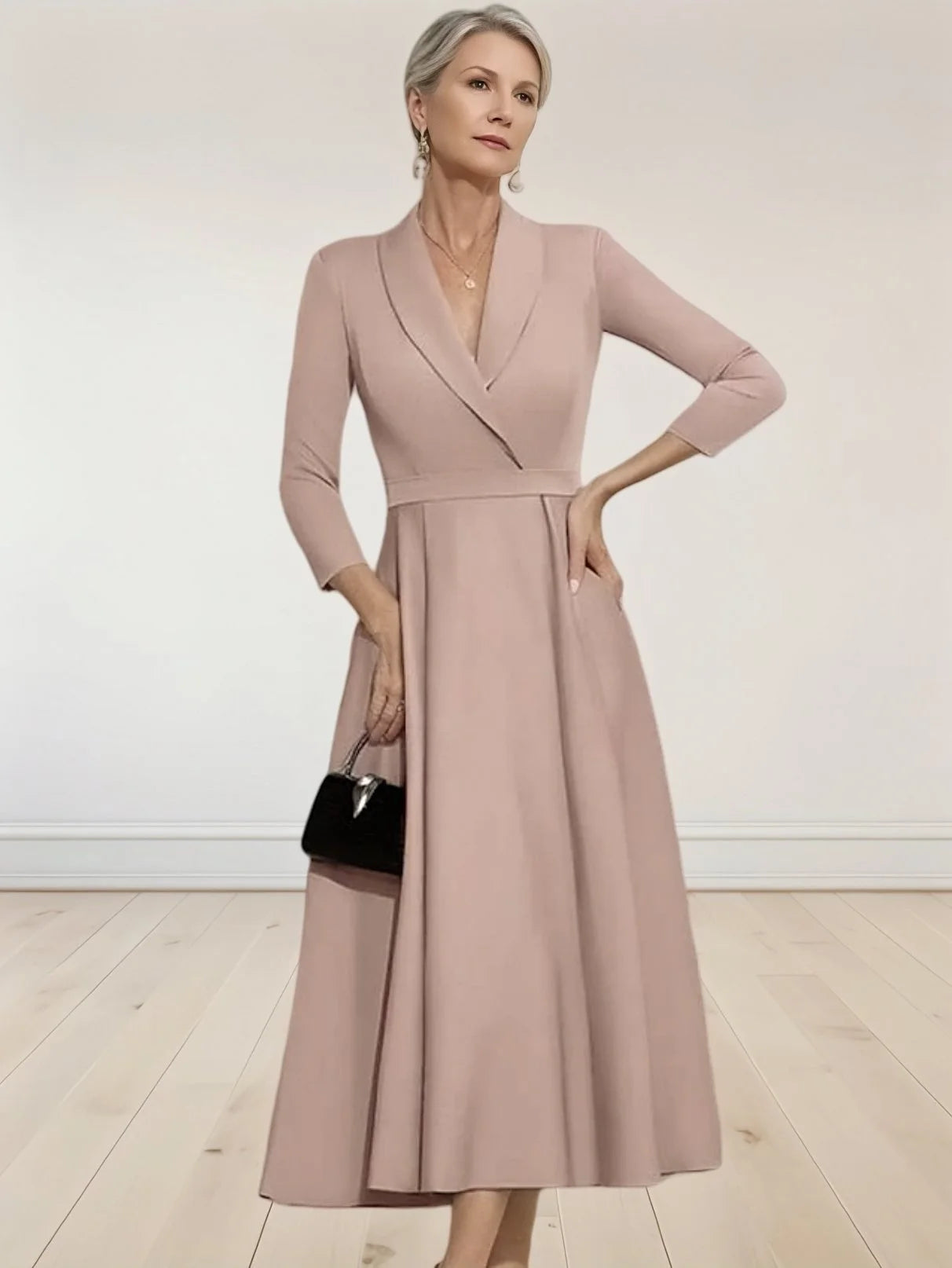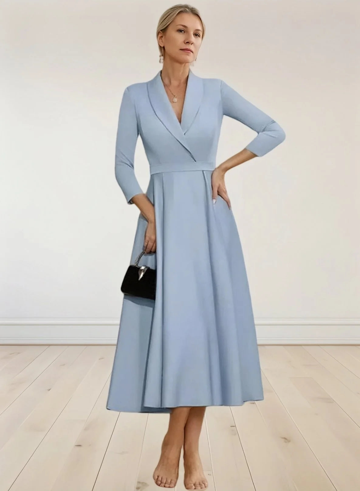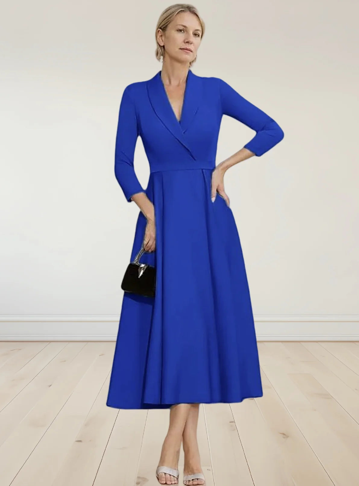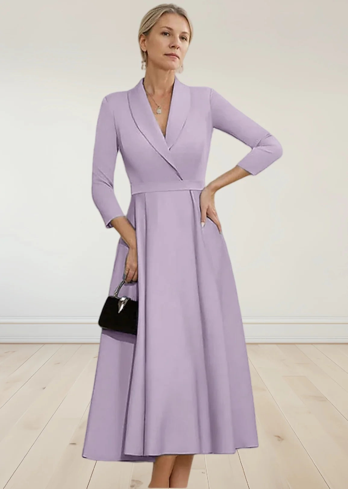 Elegant A-Line Satin Mother of the Bride Dress – Tea Length with 3/4 Sleeves | 2025 Wedding Guest Look