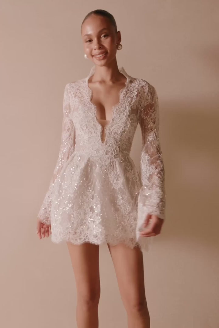 Step into timeless elegance with this Elegant V-Neck Full Sleeve Lace Beading Mini A-Line Wedding Dress. Designed for modern brides who love a vintage touch, this gown features delicate lace overlay, intricate bead embellishments, and a flattering V-neckline. The A-line silhouette with an empire waist beautifully highlights your figure, while the above-knee length adds a fresh, youthful charm. Perfect for civil ceremonies, destination weddings, or after-party celebrations, each gown is fully customizable to your measurements and color preferences.