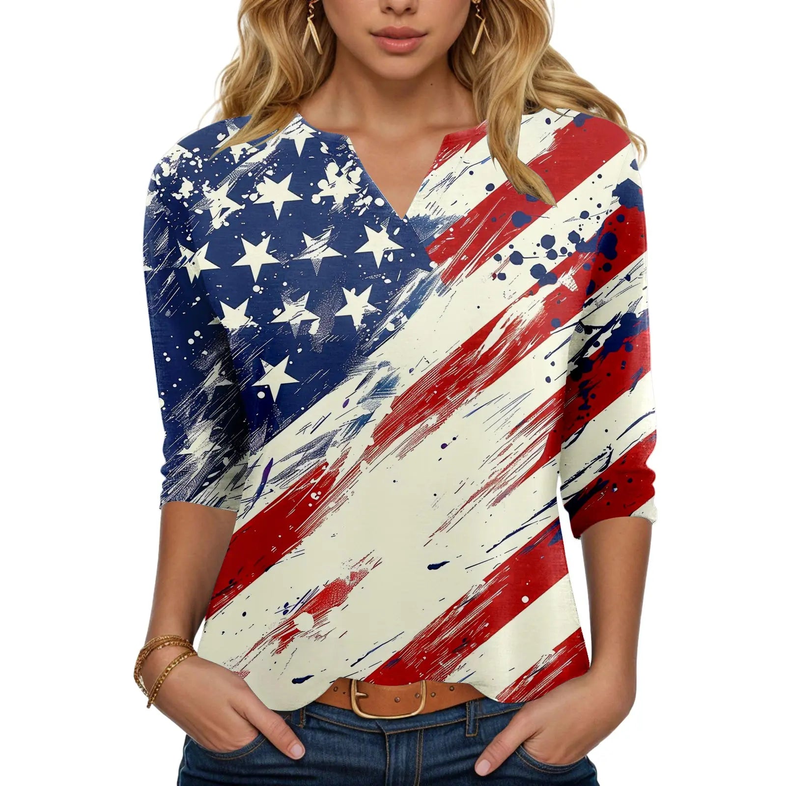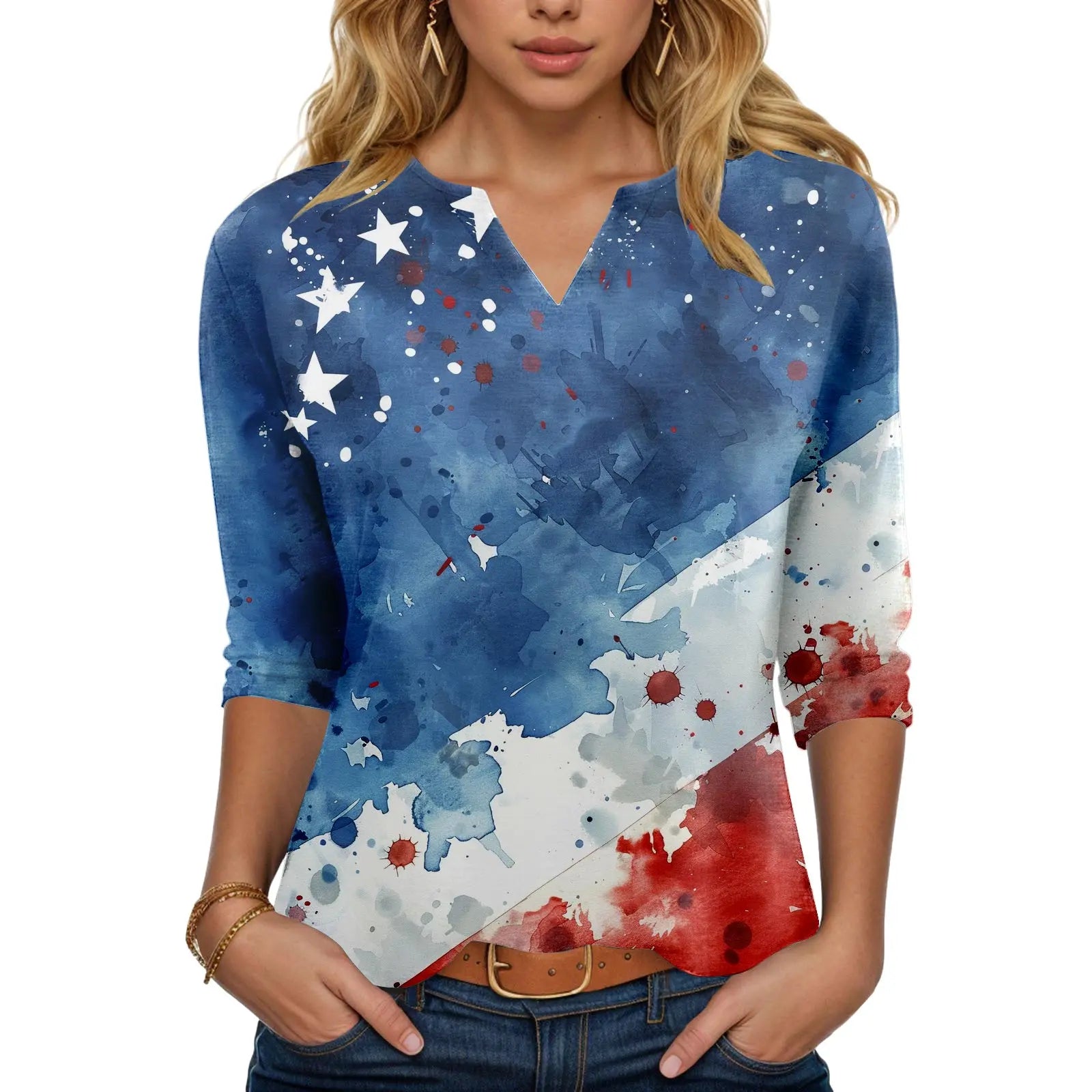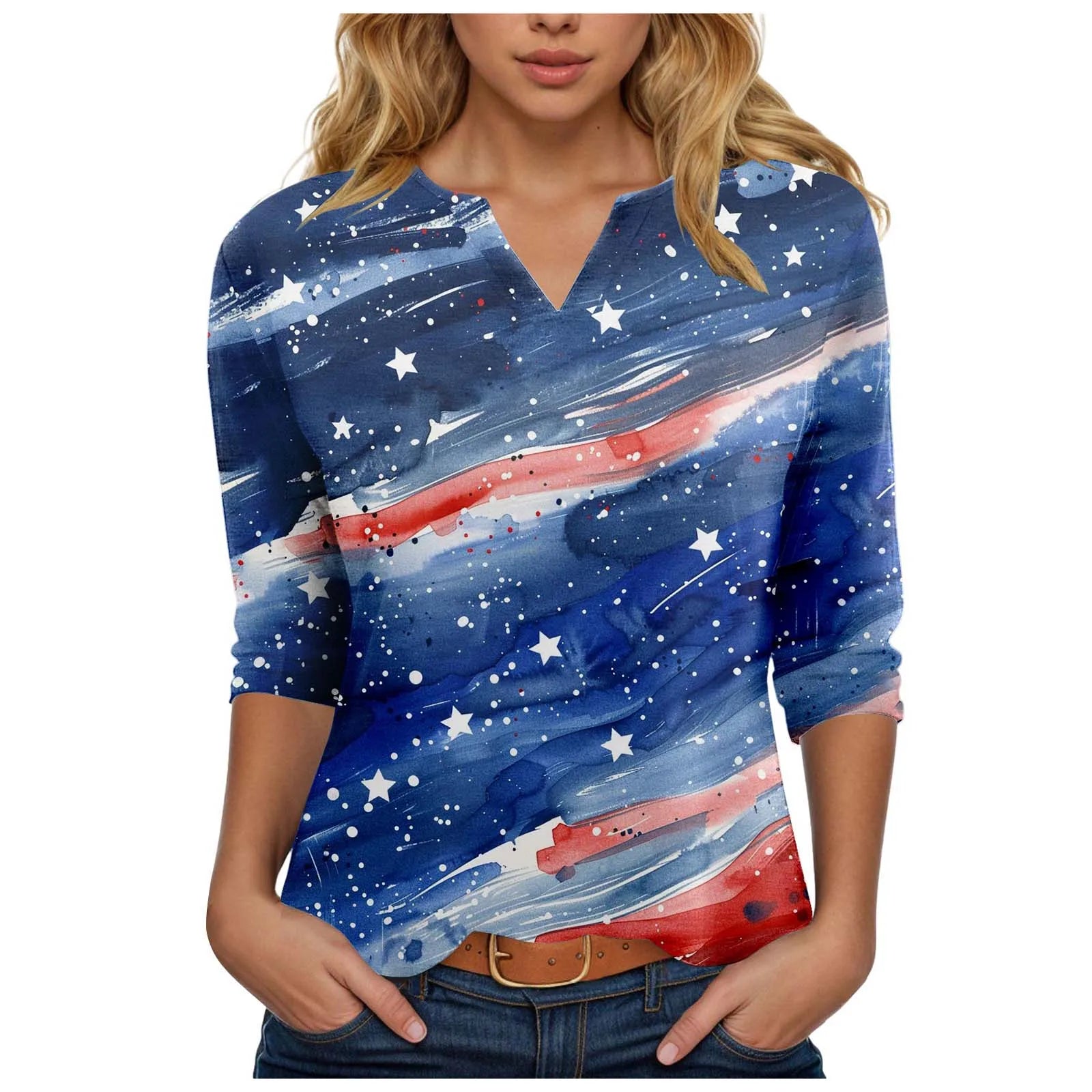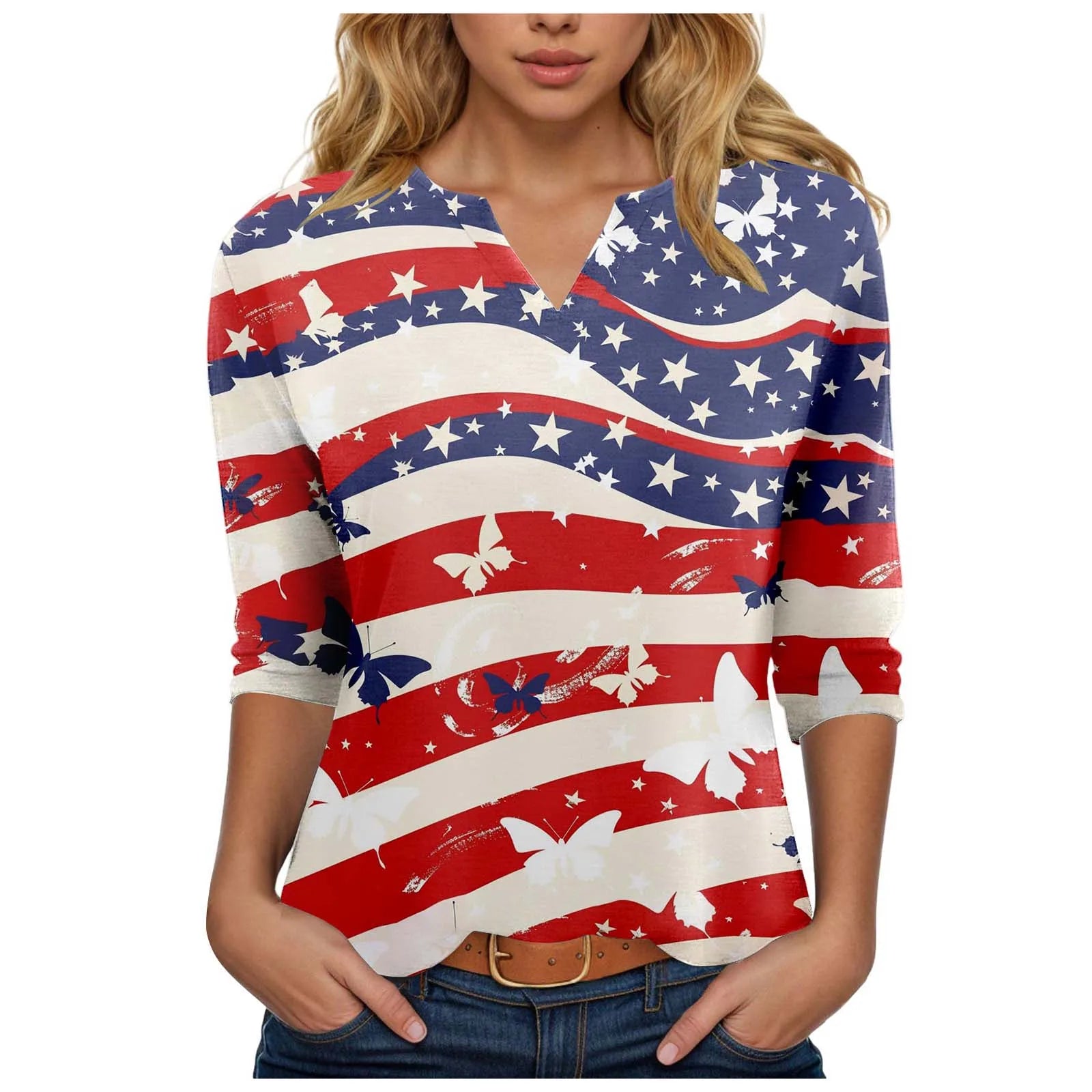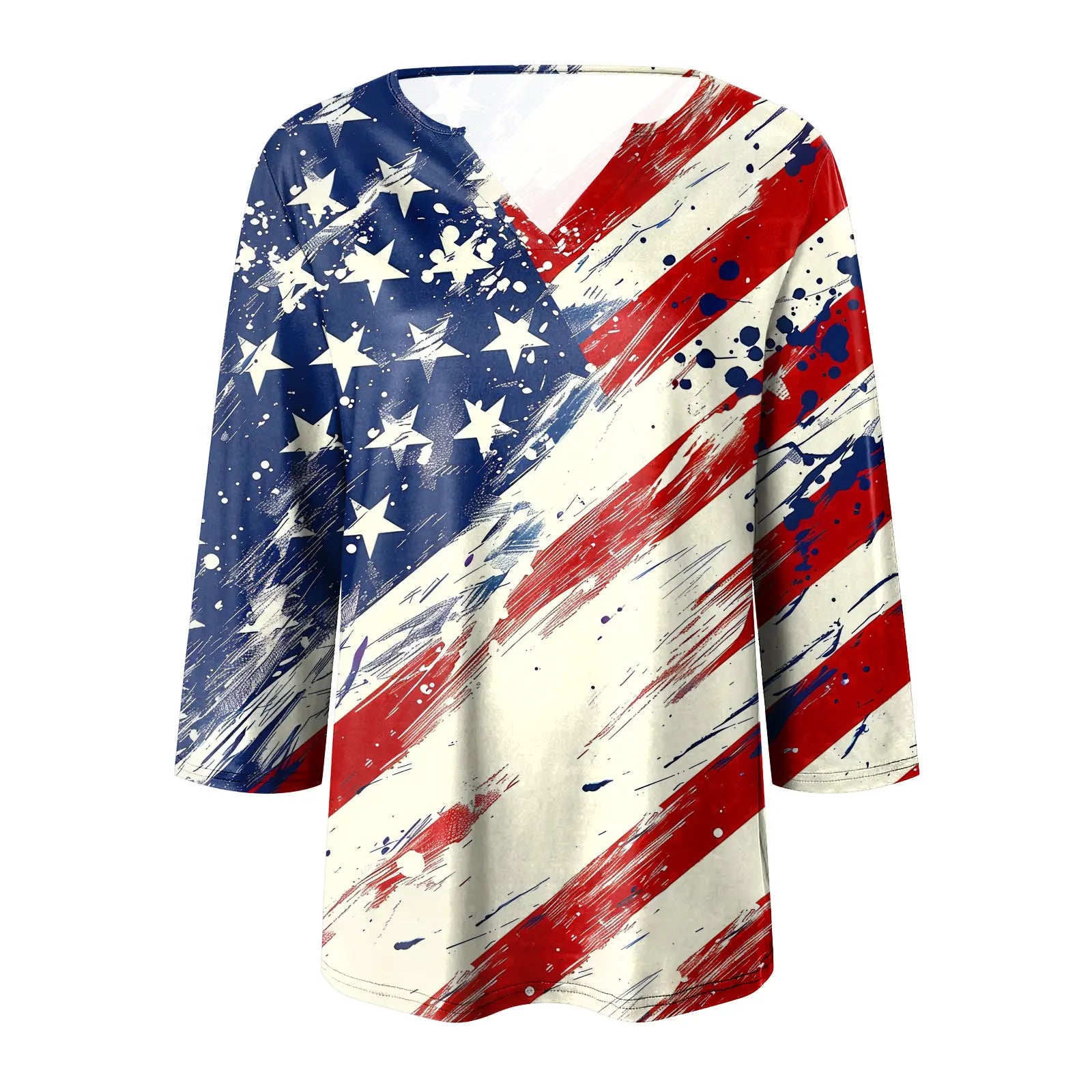 Celebrate freedom and fashion with this 2025 Independence Day Shirt for Women—a perfect blend of casual comfort and patriotic flair. Designed with a bold USA print graphic, this top features a flattering V-neckline and 3/4 length sleeves, ideal for warm-weather festivities and year-round American pride.