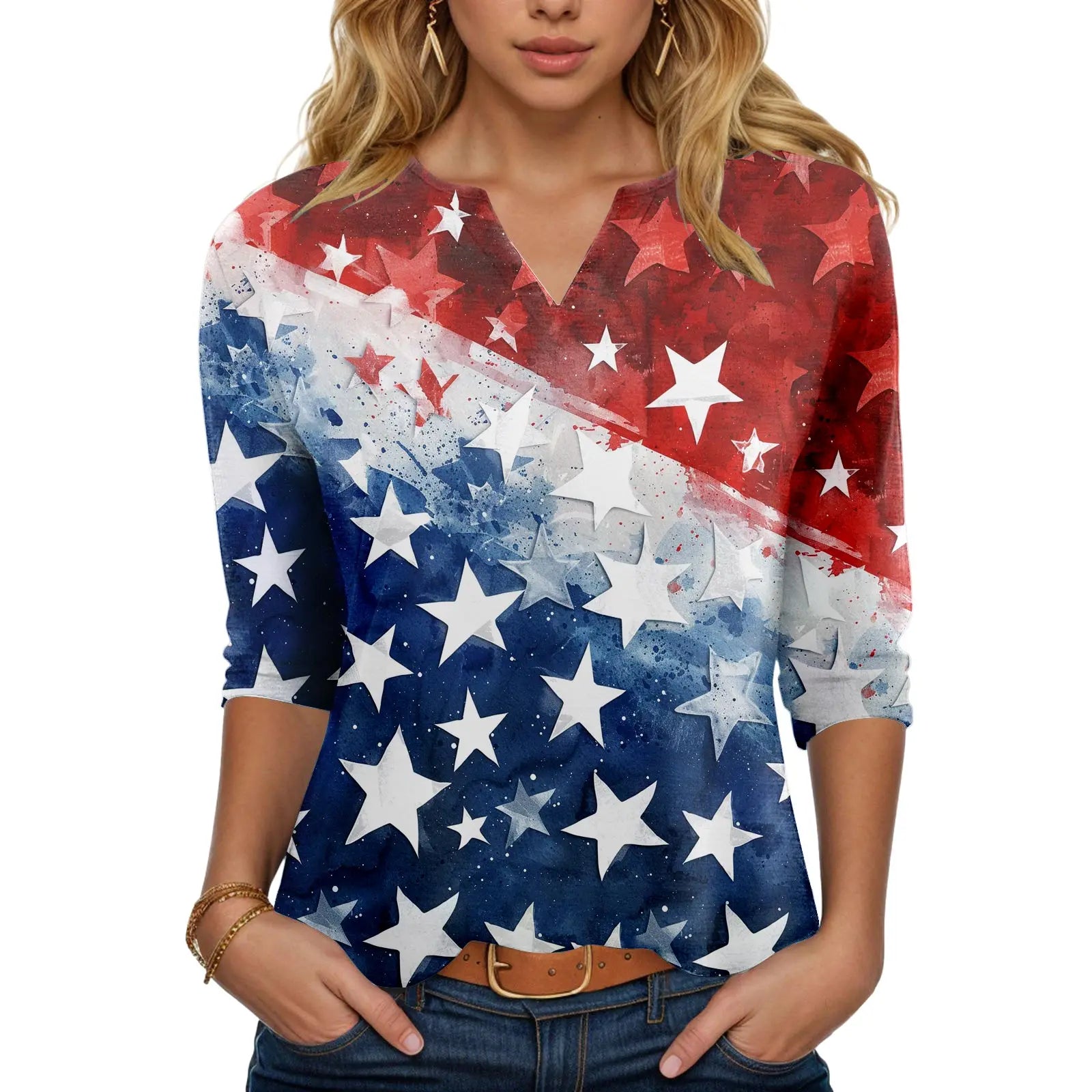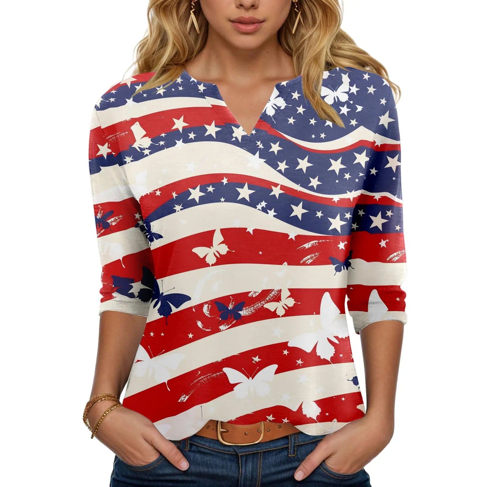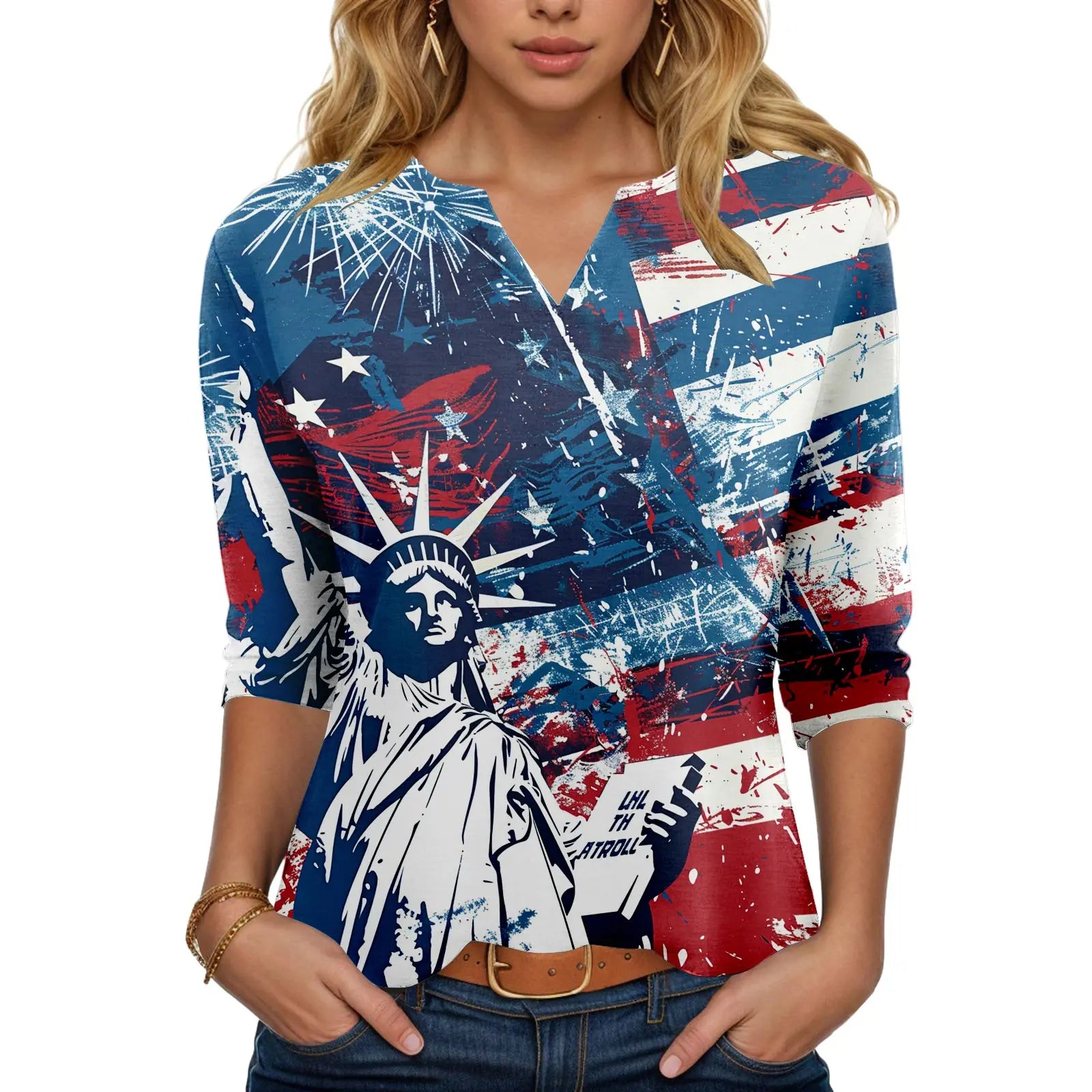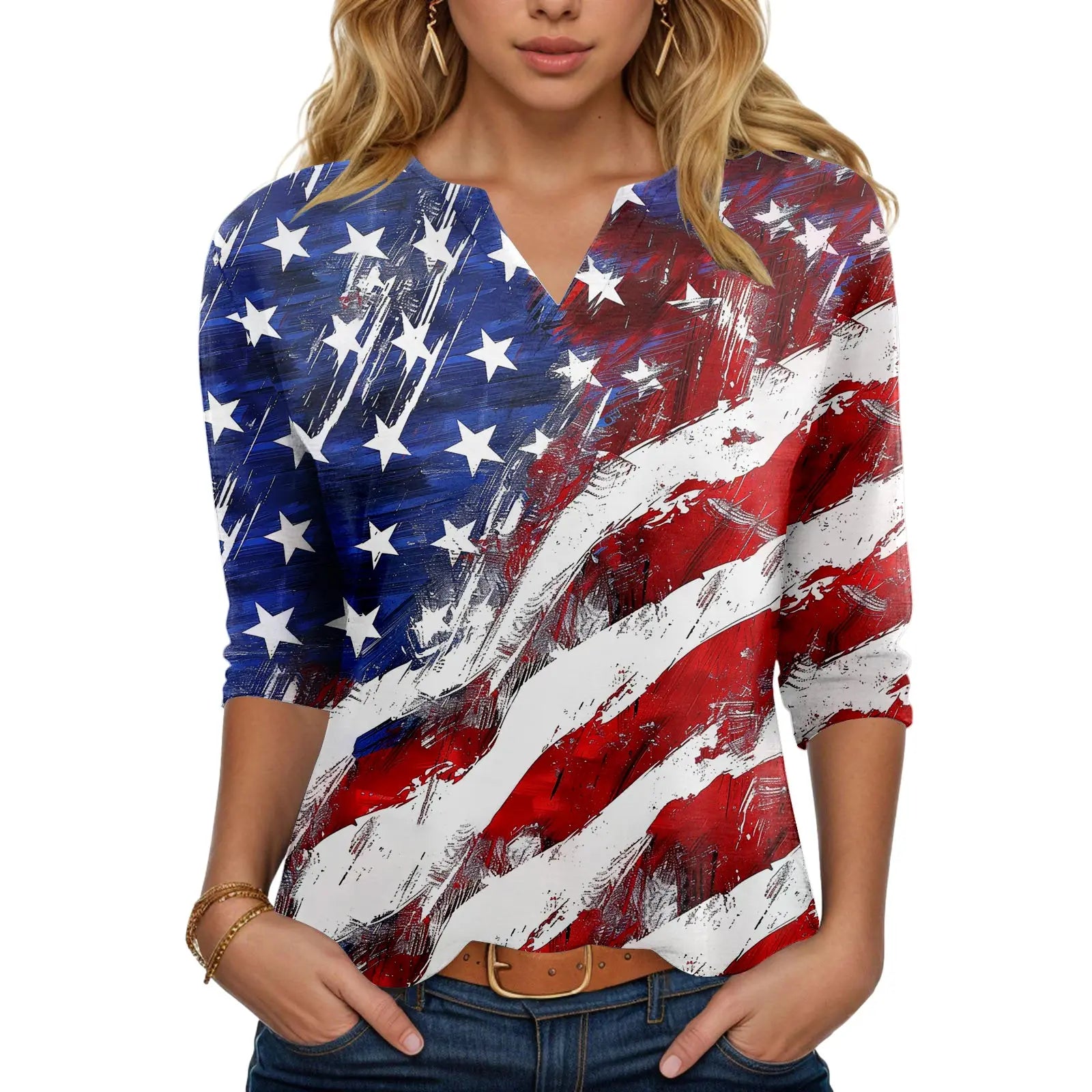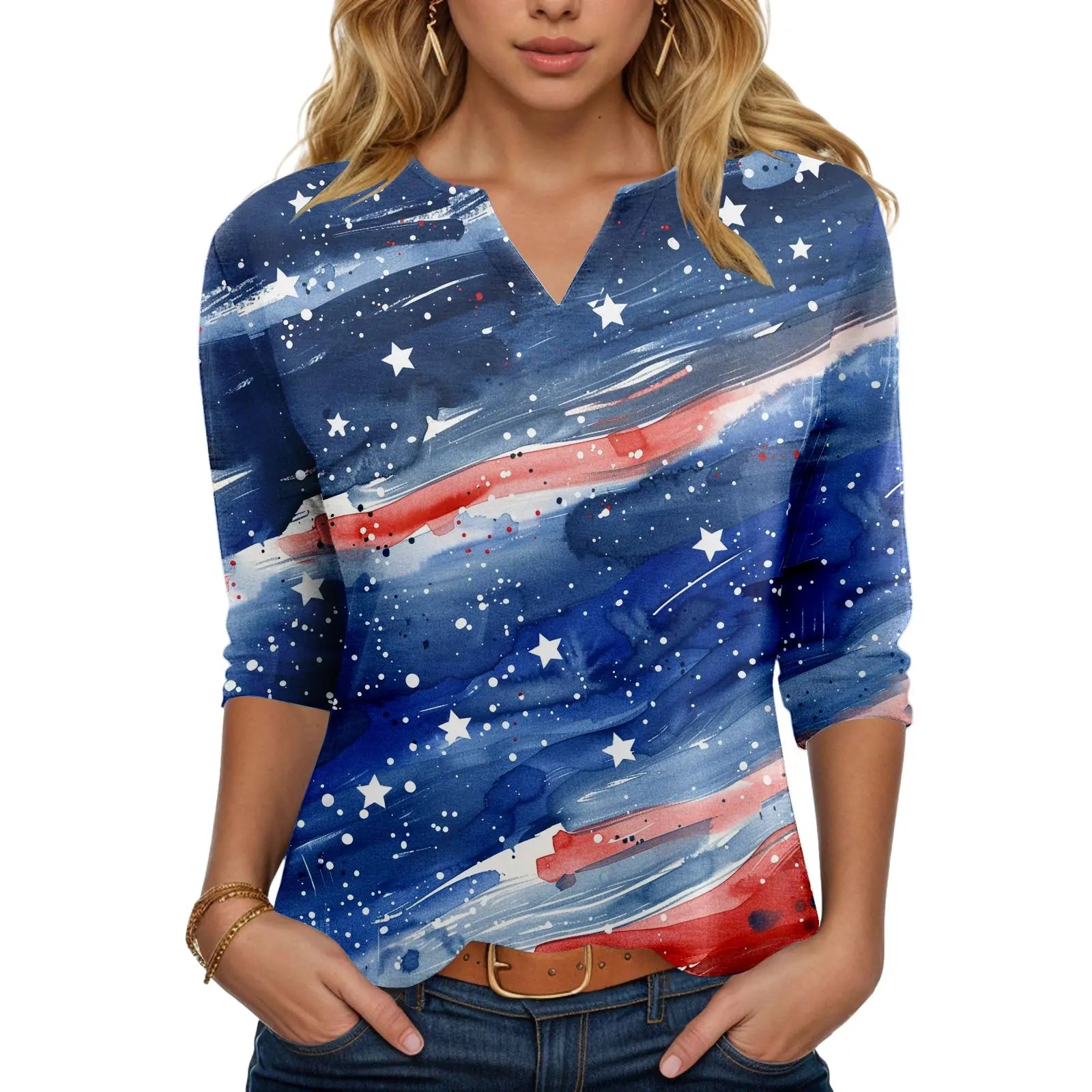 Celebrate freedom and fashion with this 2025 Independence Day Shirt for Women—a perfect blend of casual comfort and patriotic flair. Designed with a bold USA print graphic, this top features a flattering V-neckline and 3/4 length sleeves, ideal for warm-weather festivities and year-round American pride.