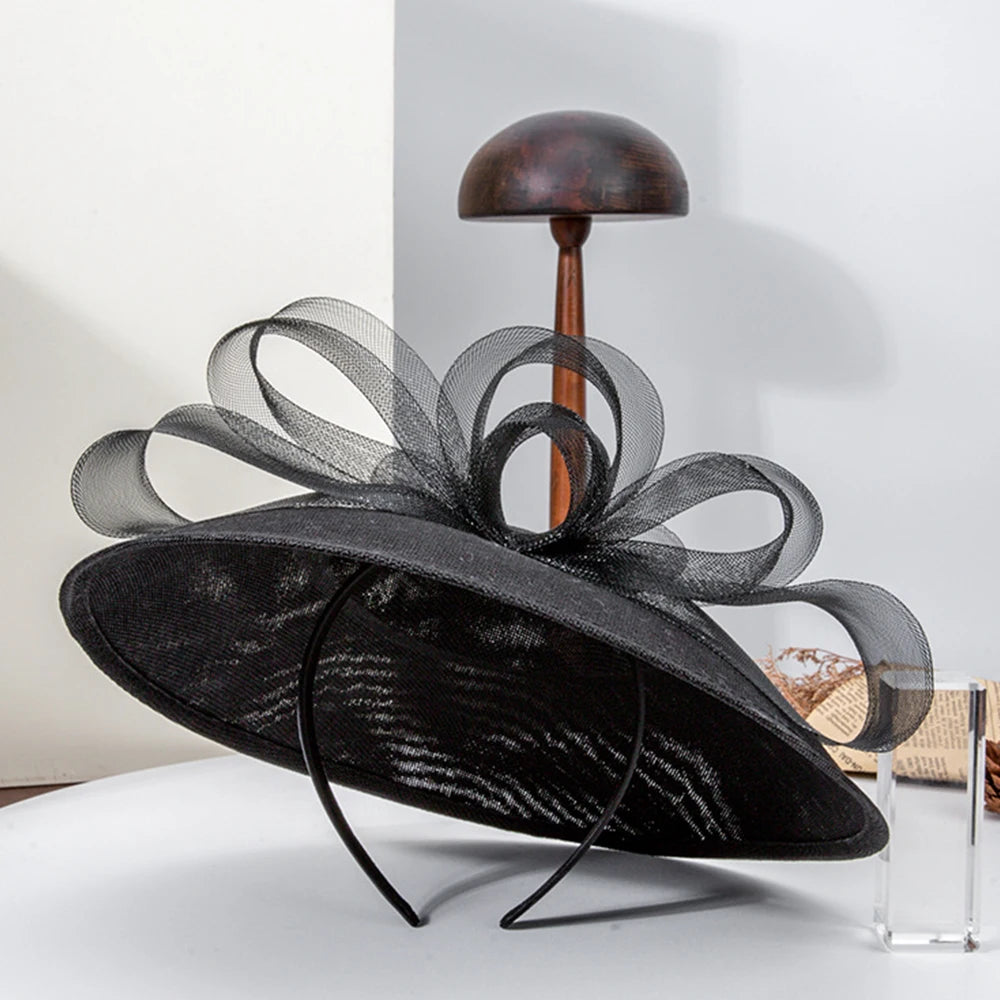 Retro Bridal Wide Brim Fascinator Hat for Women – Wedding, Cocktail, Tea Party, Church & Derby Hat with Gauze Bowknot