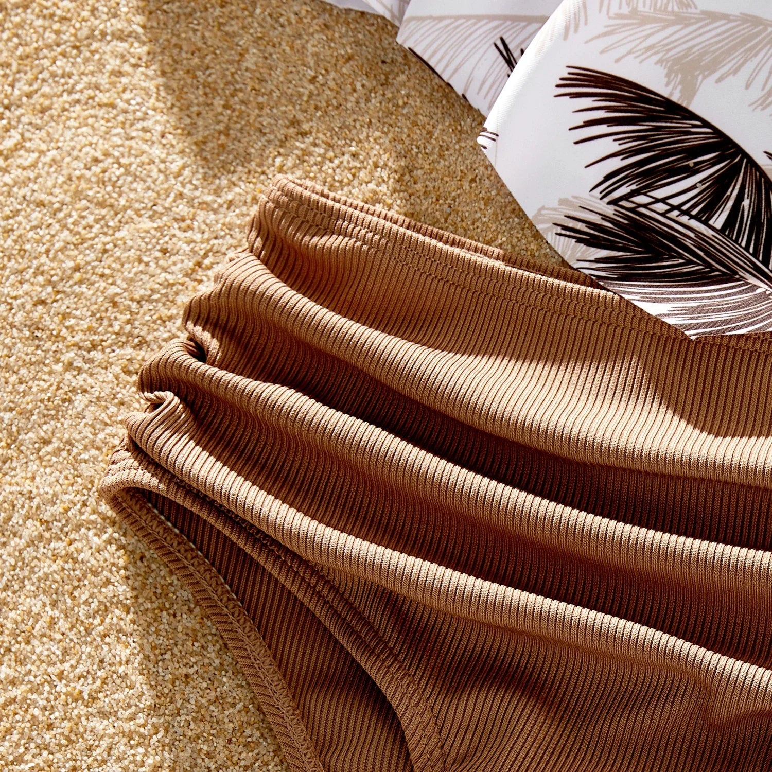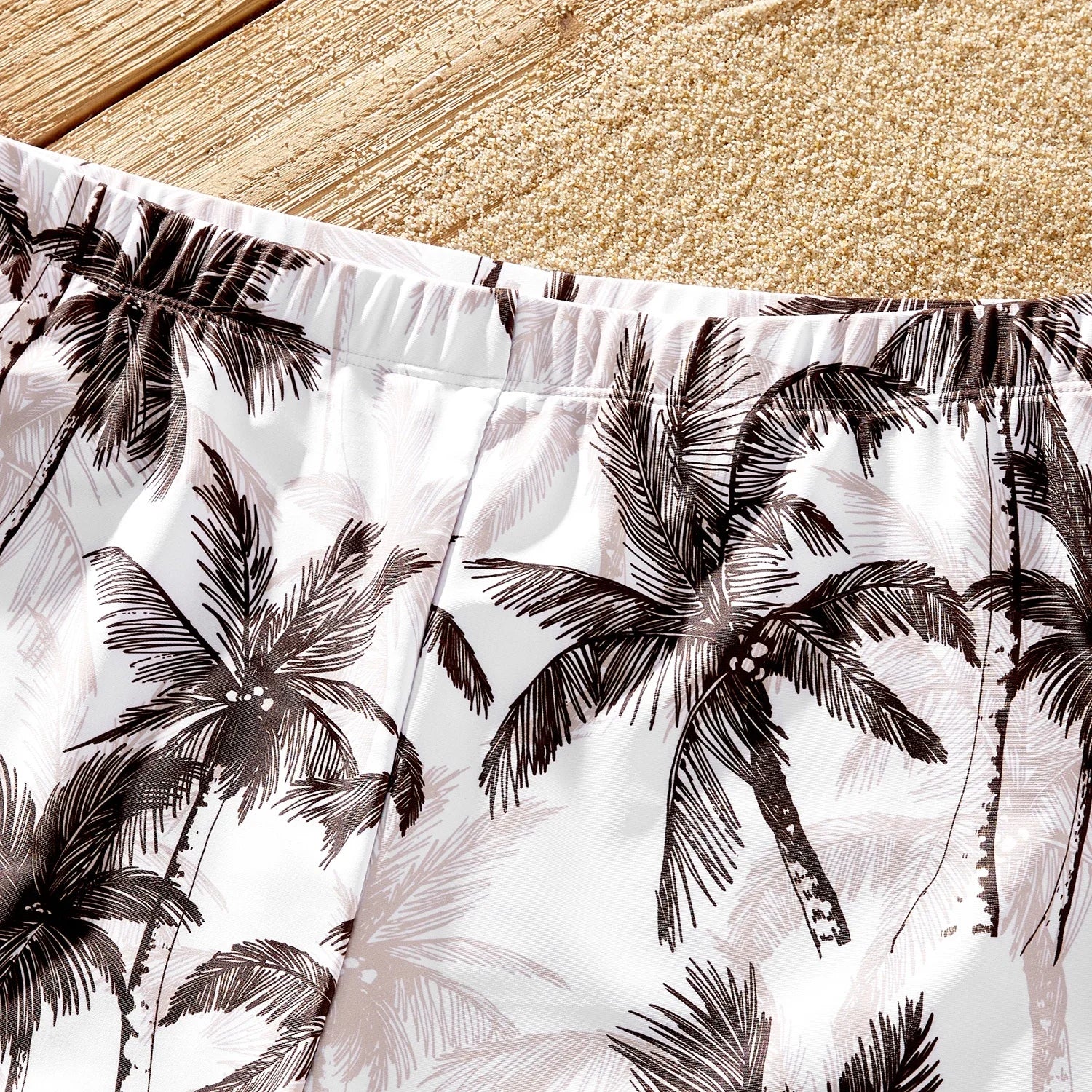 Family Matching Coconut Tree Print Swimwear – Ruched One-Piece Swimsuit & Swim Trunks Beach Set