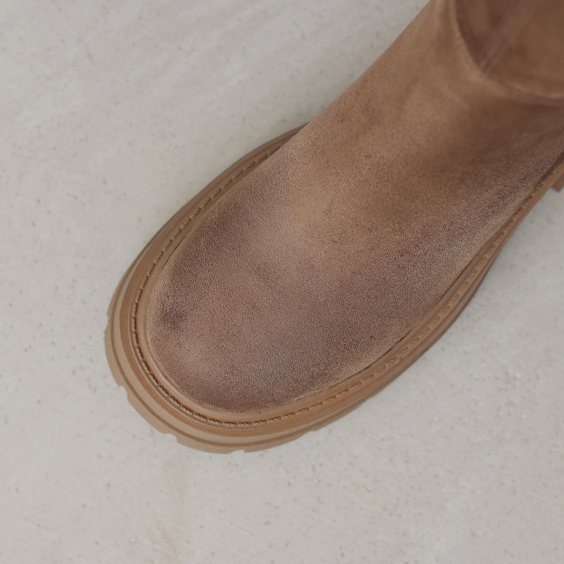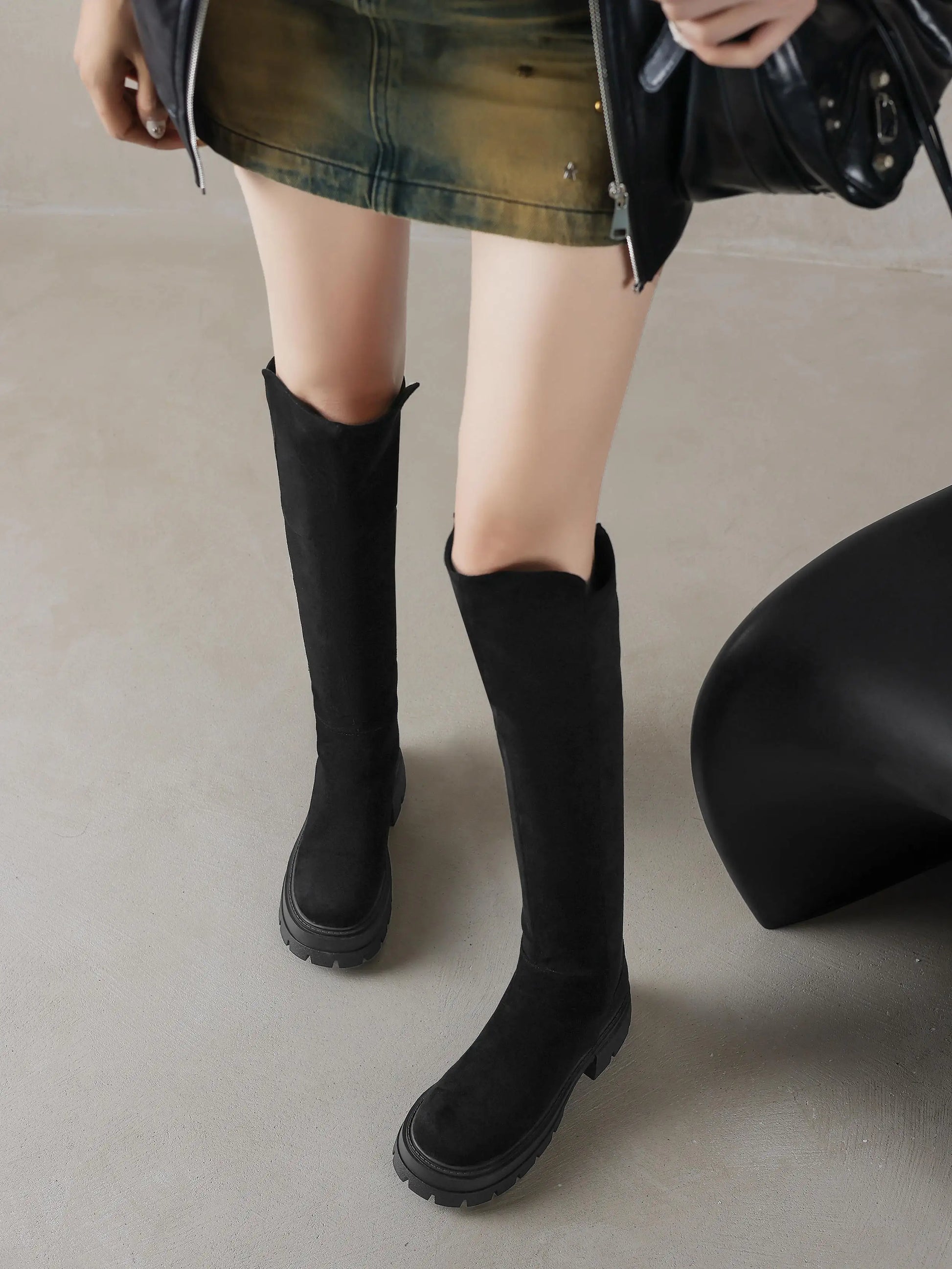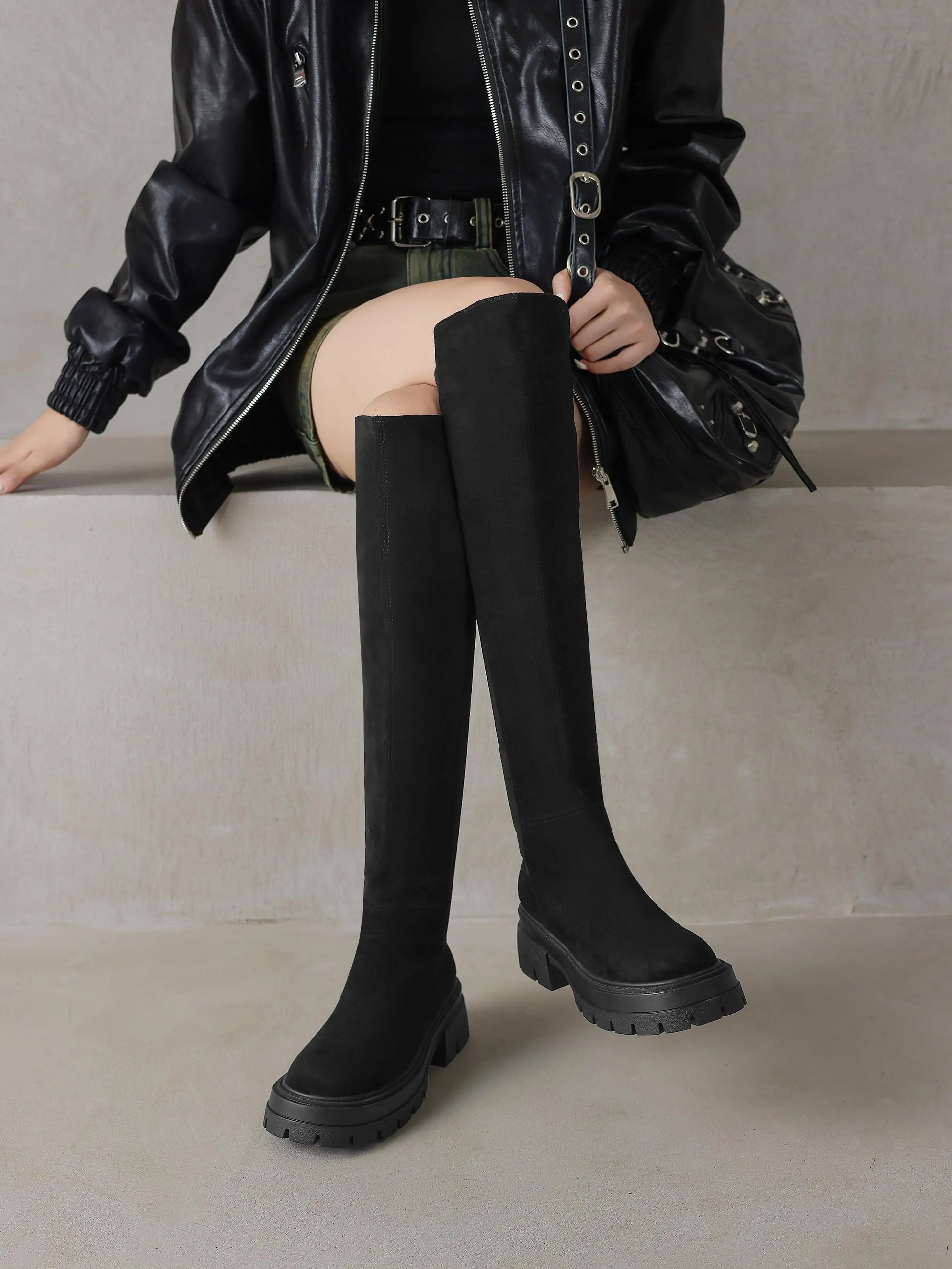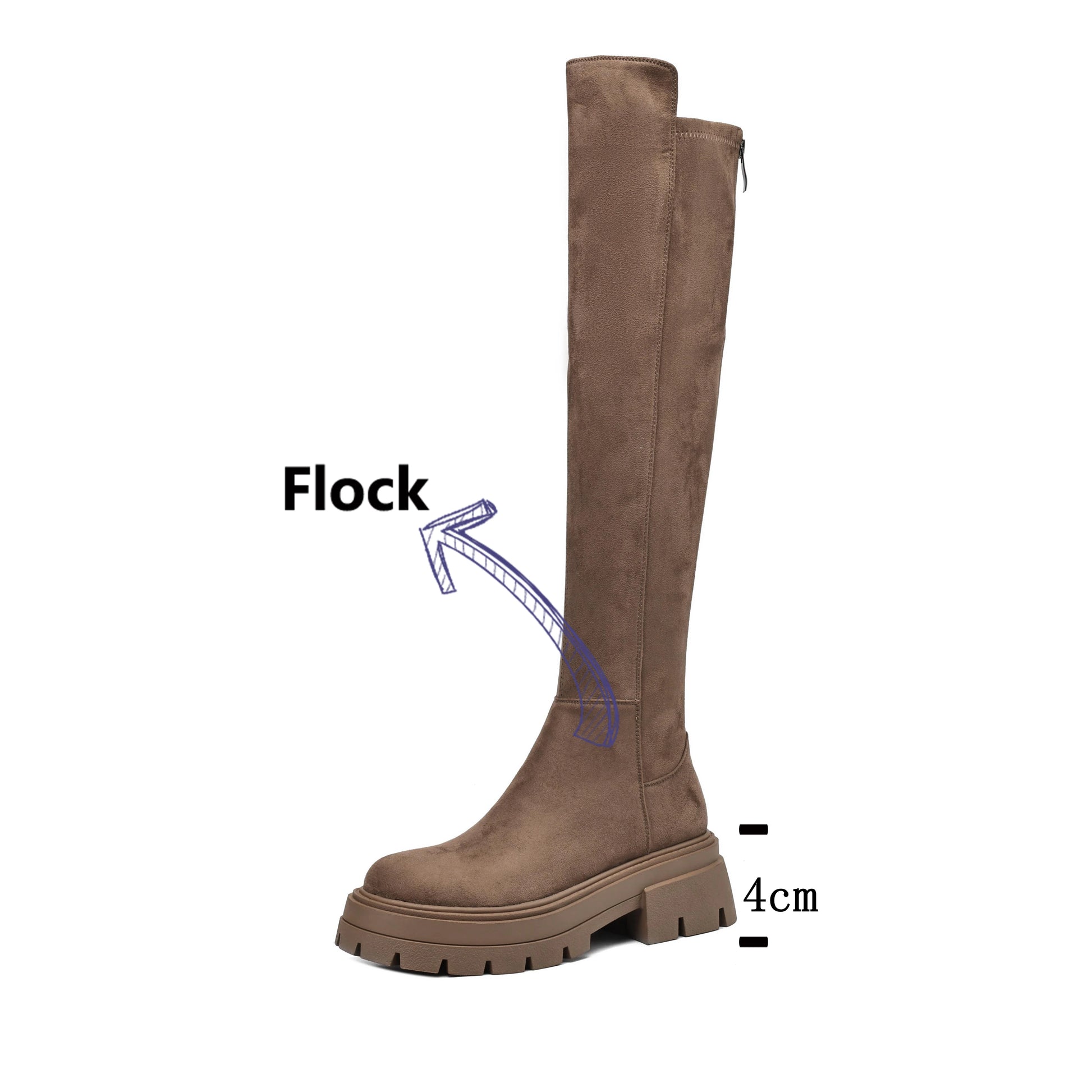 Flock Round Toe Stretch Over-the-Knee Boots with Medium Heels – Elegant, Modern, and Warm Slip-On Style for Leisure and Everyday Chic