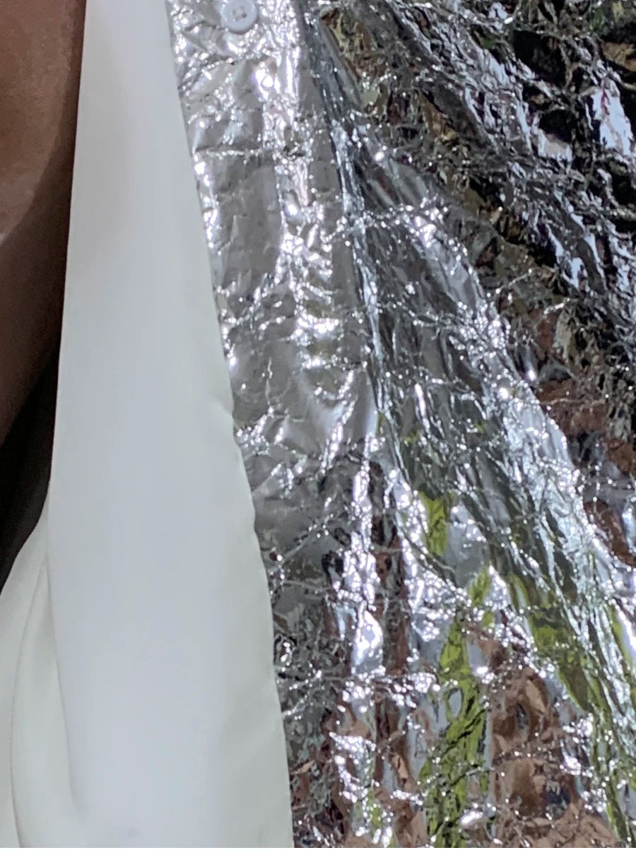 Make a bold statement with this Mauroicardi Autumn Oversized Shiny Silver Trench Coat. Designed for women who love expressive fashion, this coat combines a futuristic metallic shine with classic European tailoring. Featuring a double-breasted front, drop-shoulder sleeves, and a matching belt, it's the perfect piece for Y2K streetwear or edgy autumn looks. Crafted from soft faux leather, it adds instant glamour to any outfit—ideal for both daytime and night-out styling.